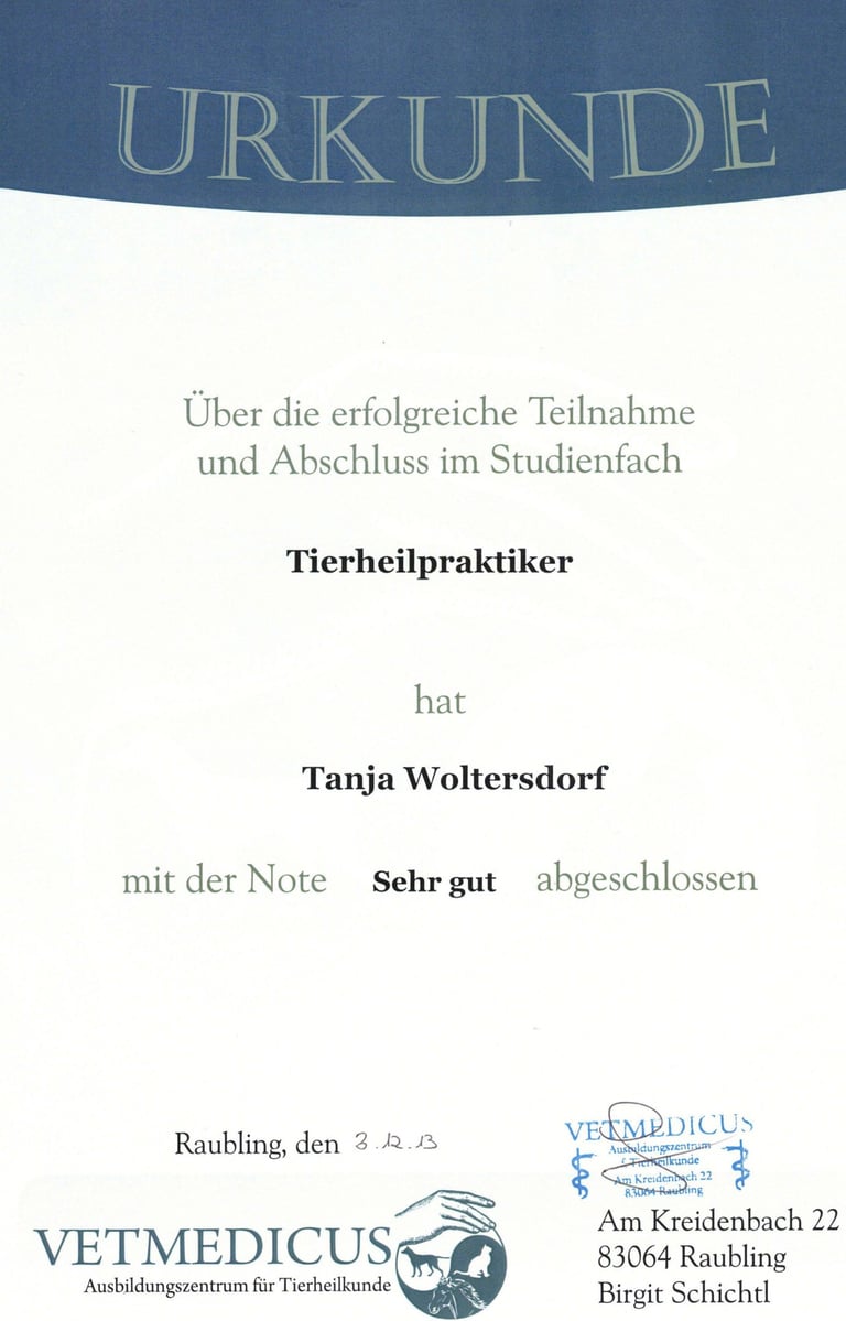 2013 habe ich mein Studium zur Tierheilpraktikerin abgeschlossen und seither mit viel Leidenschaft meine eigene Praxis aufgebaut.